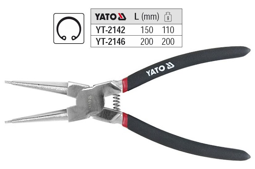 Kleště YATO na pojistné kroužky délka 200mm vnitřní rovné YT2146