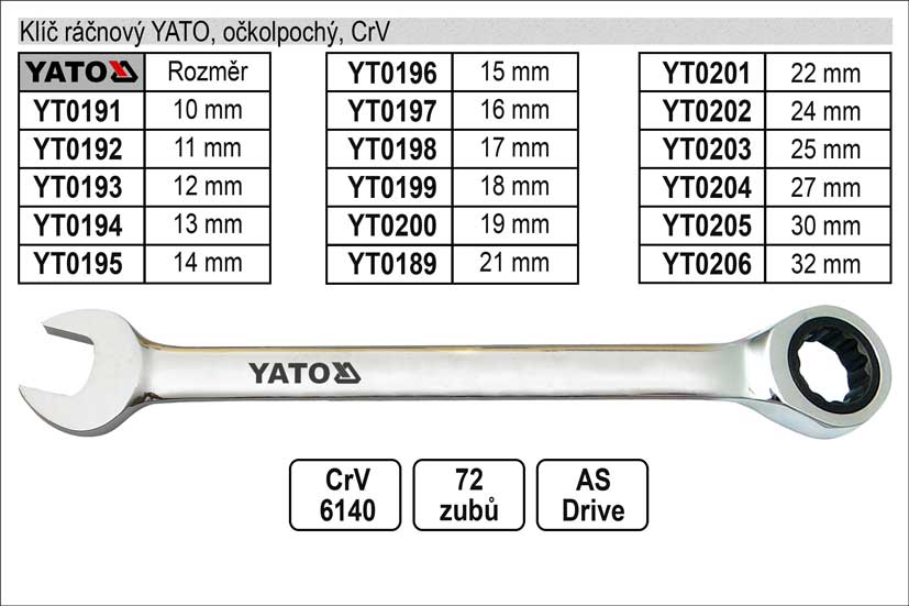 Klíč očkoplochý ráčnový 10 ,ocel CrV YATO YT0191 Technické parametry viz. foto výrobku .