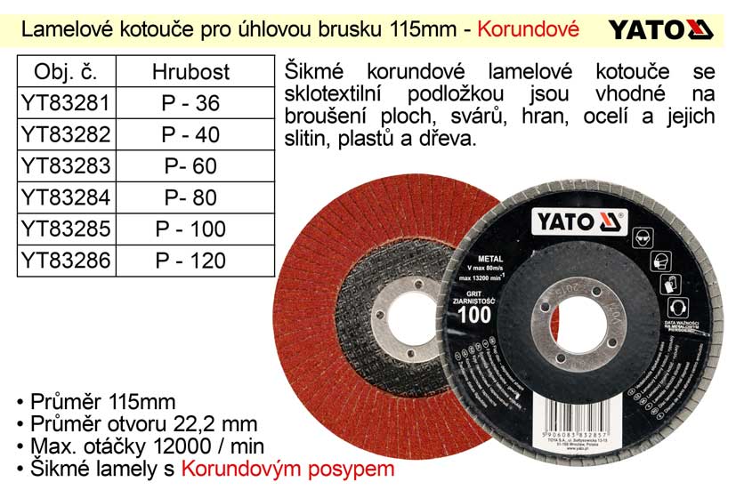 • Kotouč lamelový Yato korundový 115mm P-120