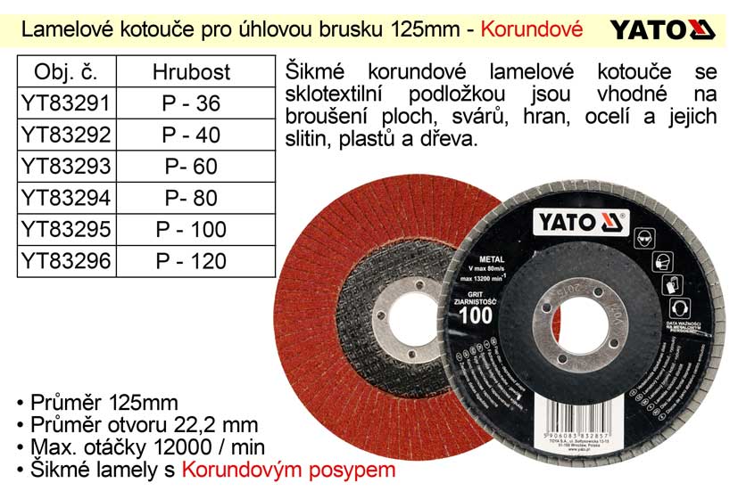 • Kotouč lamelový Yato korundový 125mm P-60