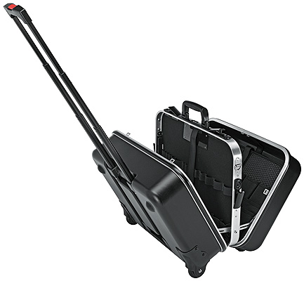 " * Odolné provedení z materiálu ABS, černé * hliníkový rám po obvodu a pevně namontovaná, stabilní přepážka osaditelná z obou stran s mnoha možnostmi uložení nářadí díky pružným poutkům a 12 kapsičkám * výsuvná rukojeť zapuštěná ve dně a dvě vnější skate kolečka s lehkým chodem * Zatížitelnost do 30 kg * otevírání z jedné strany nebo oboustranné (tvar V), dno a víko lze nezávisle na sobě zcela nebo zčásti otevírat, stabilní ve všech polohách otevření, speciální sanice chrání dno a zajišťují stabilitu * lze uzamknout * vyjímatelná přihrádka na dokumenty a vyjímatelná deska na nářadí s 13 kapsami na nářadí * podlážka na dno, výška 60 mm, flexibilní členění přepážkami, deska na nářadí jako krycí deska se 13 kapsami na nářadí * Rozměry, vnější (Š x V x H): 510 x 270 x 410 mm * Rozměry, víko, vnitřní (Š x V x H): 480 x 105 x 370 mm * Rozměry, dno, vnitřní (Š x V x H): 445 x 105 x 330 mm "