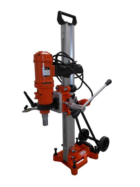 TUSON - jádrová vrtačka 2100W s odlehčeným hliníkovým stojanem. Vrtání se stojanem do průměru 200mm (cihly), 160mm (beton) Závit 1 1/4" Napětí 220-240V, 50-60Hz Počet otáček: 800/1790/3350 rpm Příkon 2100W Stojan s přepravními kolečky